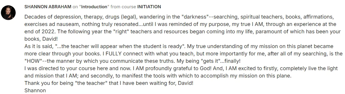 No, the Initiation Masterclass goes far beyond any traditional manifestation course and transcends surface-level teachings. This is about self-realization, tapping into your True Self—'I AM'—and transforming and manifesting from the highest planes of consciousness with my direct guidance every day for 33 days.