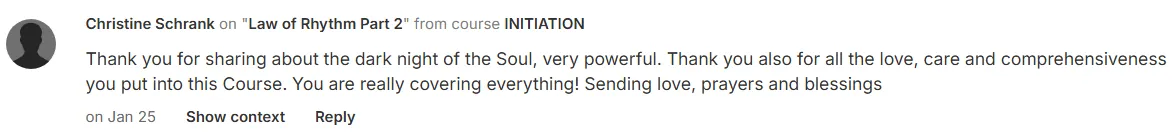 You have 40 hours of timeless wisdom that you can watch whenever you'd like. My 33-day daily guidance is powerful, short, and sweet. The daily affirmations you can listen to whenever. Just play the night time affirmations overnight and you'll literally be deprogramming and reprogramming your mind in your sleep. Initiation Masterclass is designed to fit into your life while providing the deep transformation you’re seeking. After this 33 days with me, your subconscious will already be reprogrammed, so you’ll simply continue to integrating these teachings into your daily life naturally. This is an effortless path.