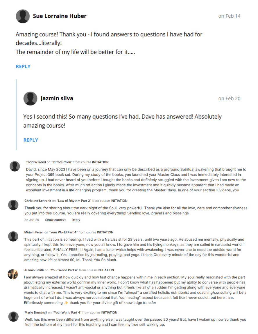 DISCLAIMER - The content/ material of Project 369 and any part of what David Kasneci shares through webcasts, online programs, in person and remote appointments, events, Lectures, teachings, protocols, energetic healing, blogs & articles, newsletters, videos, etc., is offered as informational tools to advance the process of higher consciousness and greater awareness. Project 369's website content may not by copied, reproduced, rebroadcasted, recorded, transcribed, downloaded, disseminated or distributed/ sold in any way, in whole or in part, without the express prior written consent from David Kasneci. You further agree not to display or use in any manner any materials or marks, without express prior written permission from David Kasneci owner of Project 369. Any unauthorized use of the materials in the site is prohibited. You agree to abide by any and all additional trademark and copyright signs, notices, information or restrictions contained in any part of the site. Information provided through www.project369.com is for general informational purposes only and is not intended or implied to serve as medical or therapeutic advice, diagnosis or treatment. You should not use this information to diagnose or treat any health issues, illnesses or diseases. Project 369 does not providing any medical or therapeutic advice. If you have or suspect you have a health or therapeutic problem, you should consult with your doctor or therapist. By accessing or using www.project369.com, you represent and warrant that your activities are lawful in every jurisdiction where you access or use the site.